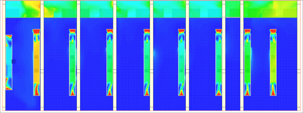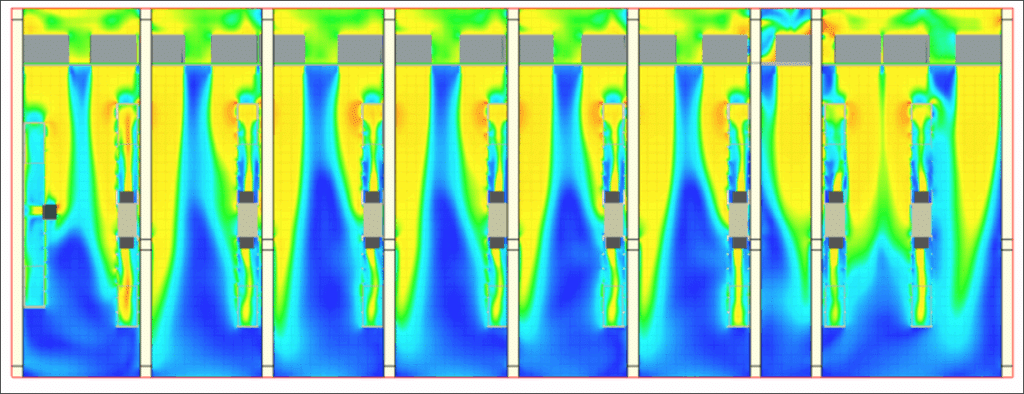 يولد نموذج CFD صورًا ومقاطع فيديو واضحة، يمكن لجميع المشاركين في المشروع – المهندسين والمشغلين ومديري السلامة – الوصول إليها وبالتالي يمكنهم توقع أي مناطق ارتفاع درجة الحرارة أو إعادة التدوير أو التعثر الحراري. يتيح هذا التمثيل المبسط والدقيق في نفس الوقت للسلوك الهوائي اتخاذ قرارات سريعة ومستنيرة حتى قبل تركيب بنوك الأحمال.